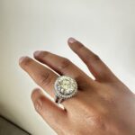 Moissanite, known for its diamond-like brilliance and ethical sourcing, offers a sustainable yet luxurious alternative to traditional gemstones. Whether worn as an engagement ring or a statement piece, this exquisite ring guarantees admiration and timeless beauty.
