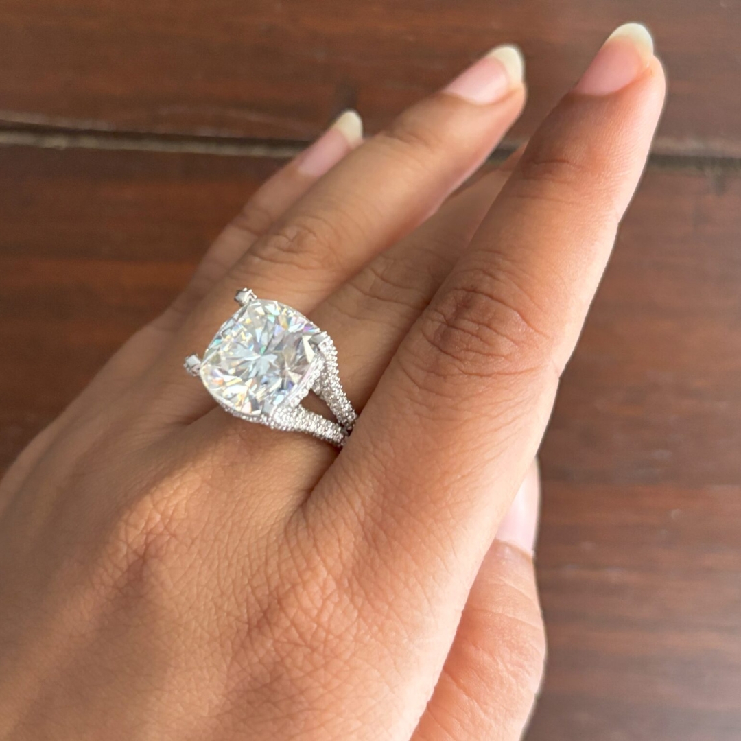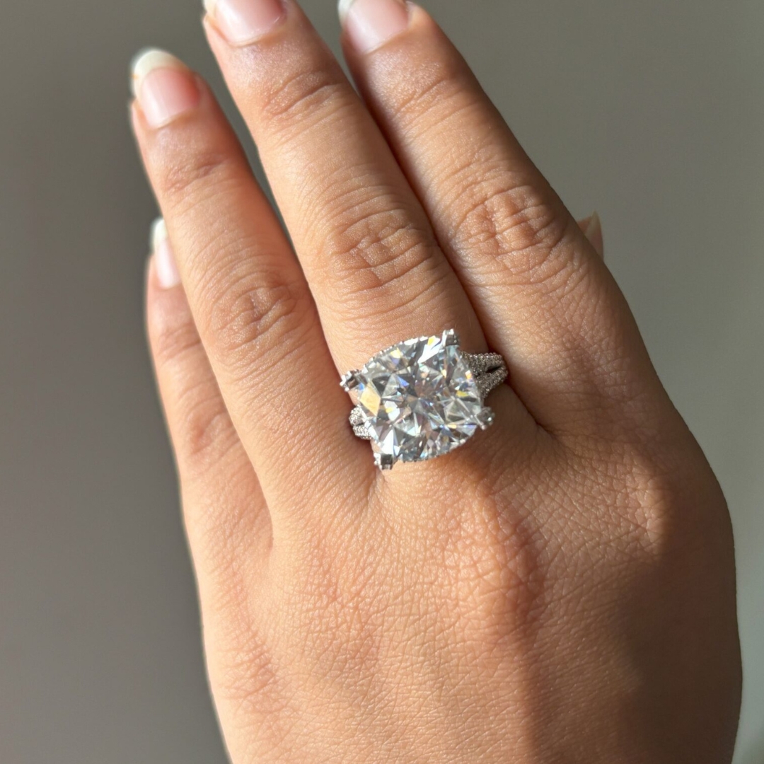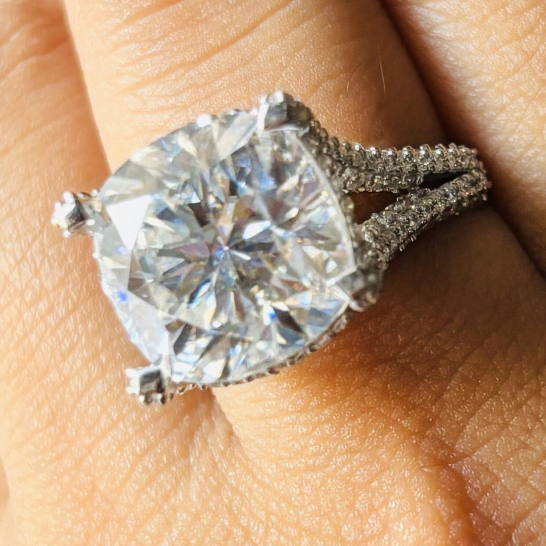 | Stone 1 | Cushion Moissanite (13 mm, 9.29 ct) |