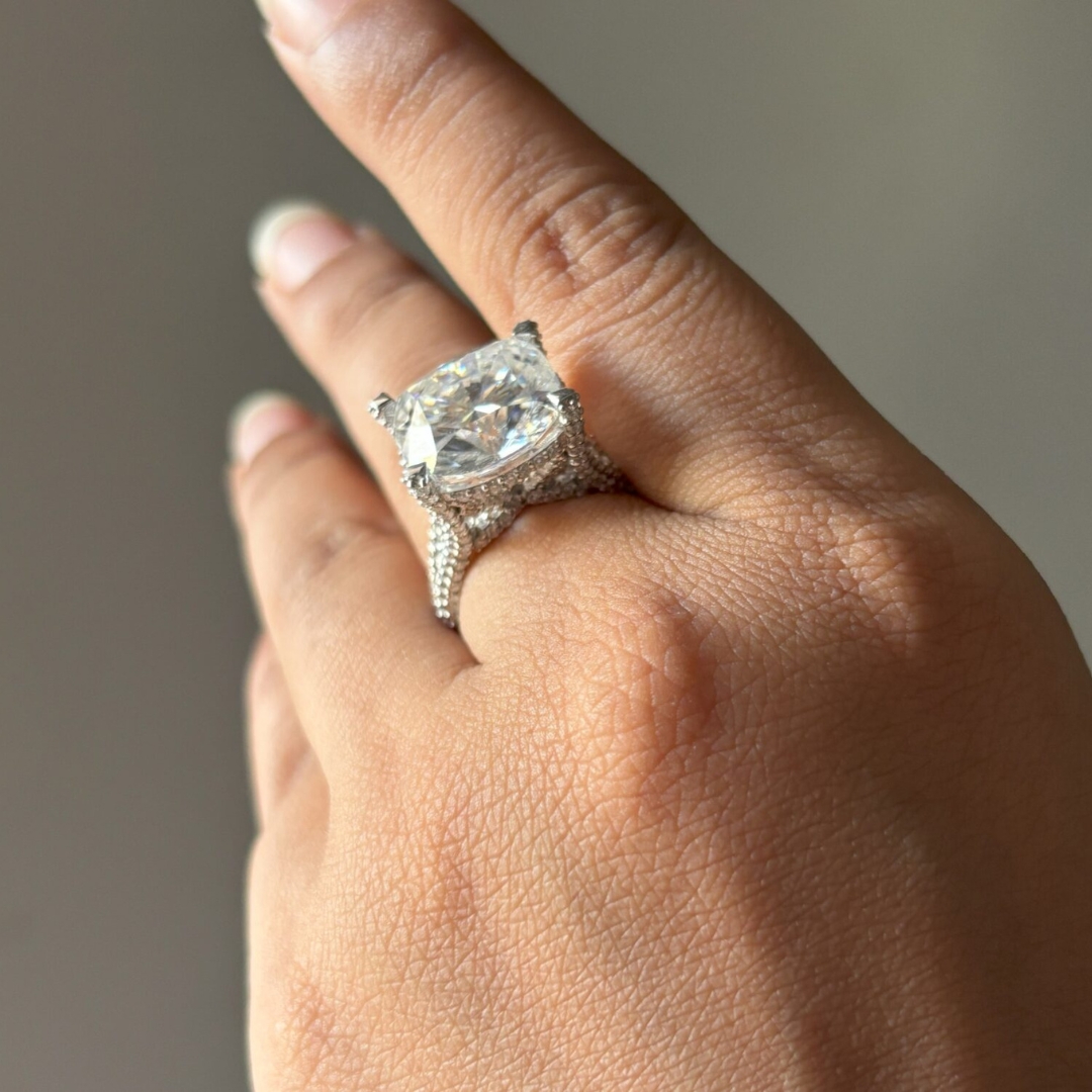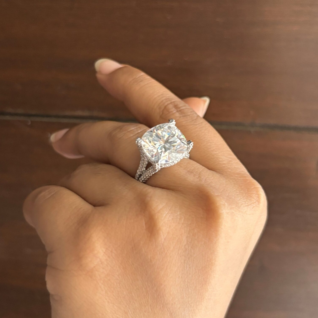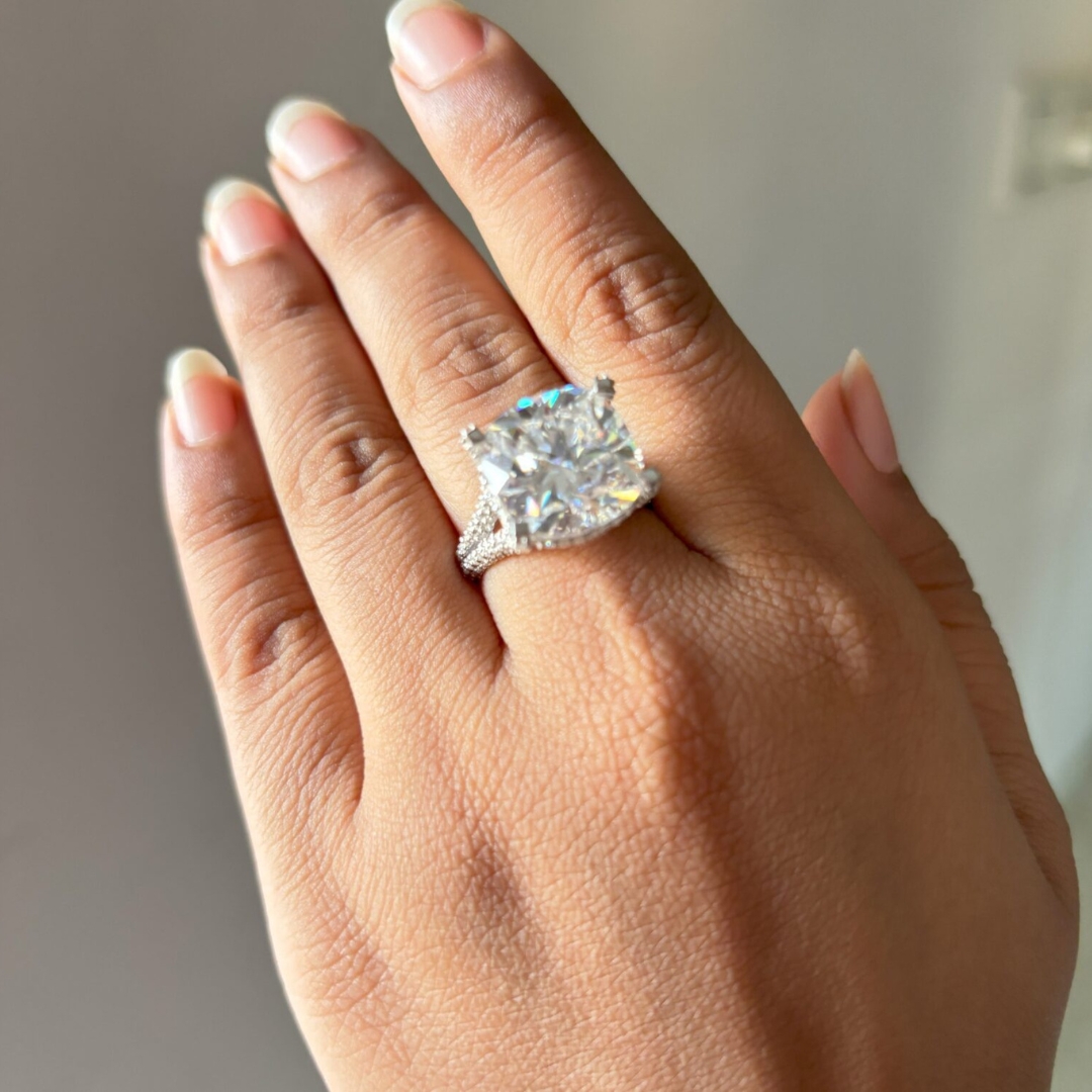 | Stone 1 | Cushion Moissanite (13 mm, 9.29 ct) |