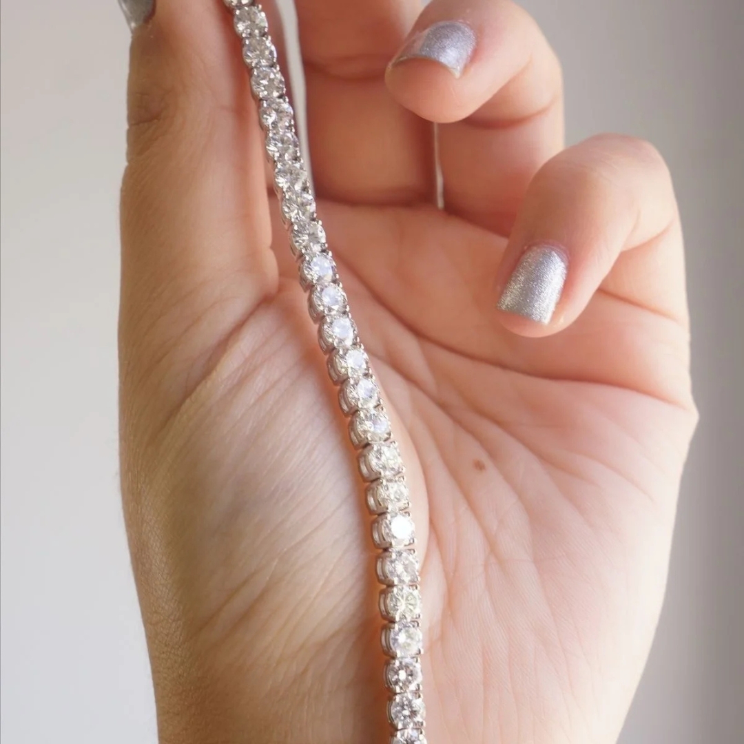 Exude timeless elegance with the Silver Solitaire Moissanite Bracelet, a stunning piece crafted to perfection for every occasion. This exquisite bracelet features radiant solitaire moissanite stones with a total weight of 6.03 carats, each meticulously cut to a precise 3 mm size for maximum brilliance and fire.