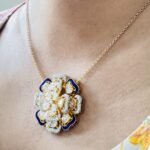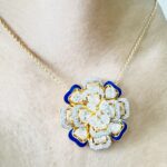 The Polki and Blue Enamel Flower Pendant is a breathtaking fusion of traditional artistry and modern elegance. Crafted in premium silver, this exquisite pendant features 3.60 ct of Polki diamonds, known for their raw, uncut beauty, lending a regal charm to the design. The 1.20 mm moissanite stones (1.50 ct) add a radiant sparkle, enhancing the pendant’s brilliance. The intricate blue enamel floral detailing brings a touch of sophistication and uniqueness, making this pendant a standout piece. With a gross weight of 15.88 grams, it is substantial yet comfortable to wear, perfect for both special occasions and everyday luxury.