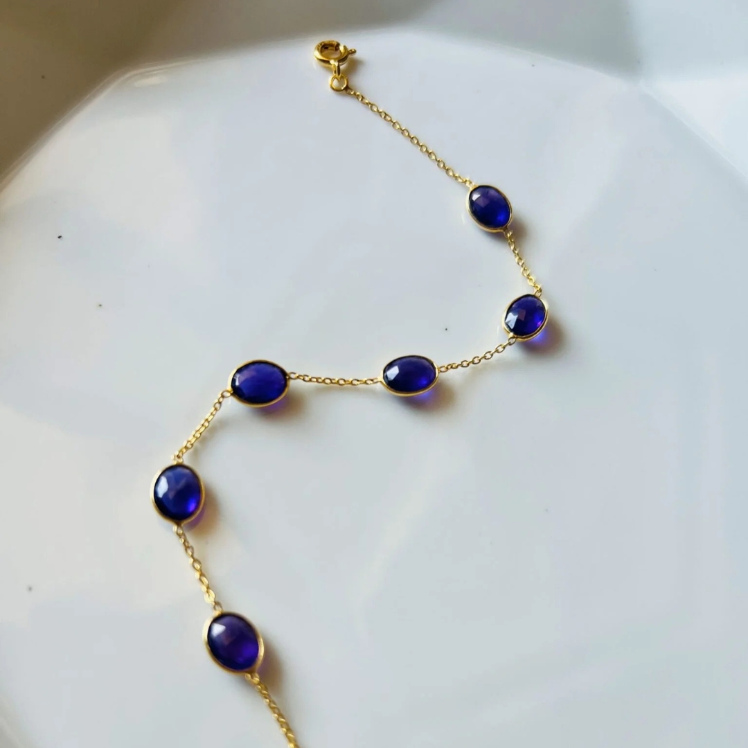 The 14k Solid Yellow Gold Blue Sapphire Minimal Bracelet is a perfect gift for someone special or a valuable addition to your own jewelry collection. Elevate your style with this timeless and graceful piece that complements every occasion.