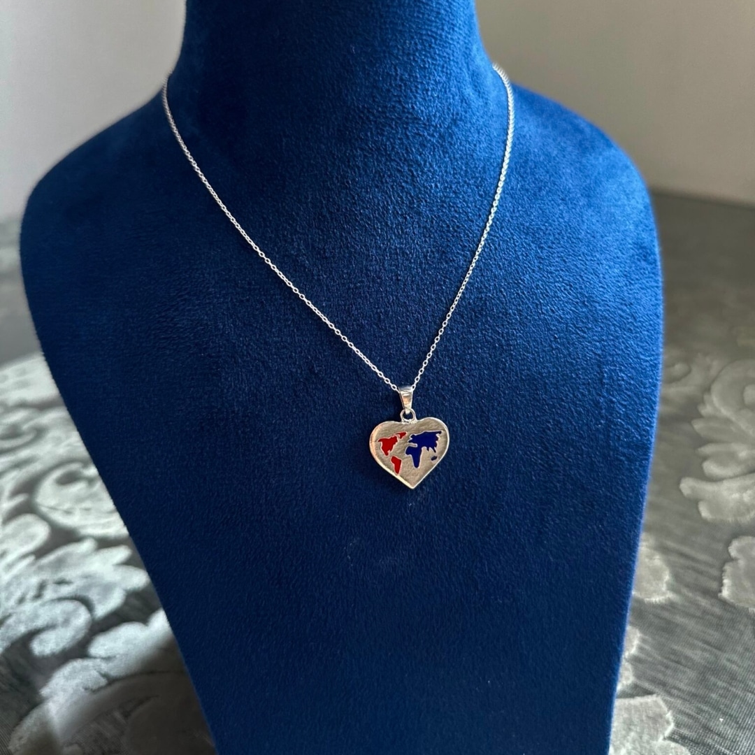 Celebrate the spirit of love and exploration with the Map Love Pendant, a heartfelt creation crafted in premium silver. This beautifully designed pendant showcases a world map motif intricately accented with vibrant blue and red enamel, symbolizing passion, connection, and the journey of love across borders. Its compact form and thoughtful detailing make it a charming piece for everyday wear or a meaningful gift for someone special. With a gross weight of 2.50–3.00 grams, the pendant is lightweight yet sturdy, ensuring lasting comfort and durability. Whether worn alone or layered with other pieces, the Map Love Pendant speaks volumes about your story and sense of adventure, making it the perfect companion for those who carry love with them wherever they go.