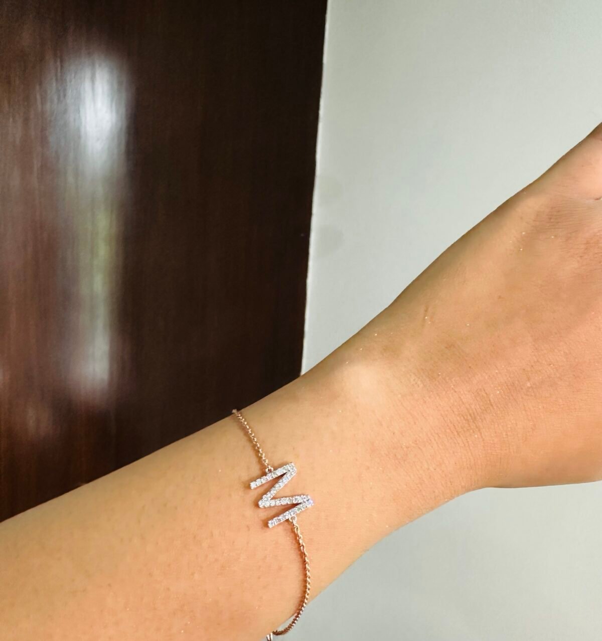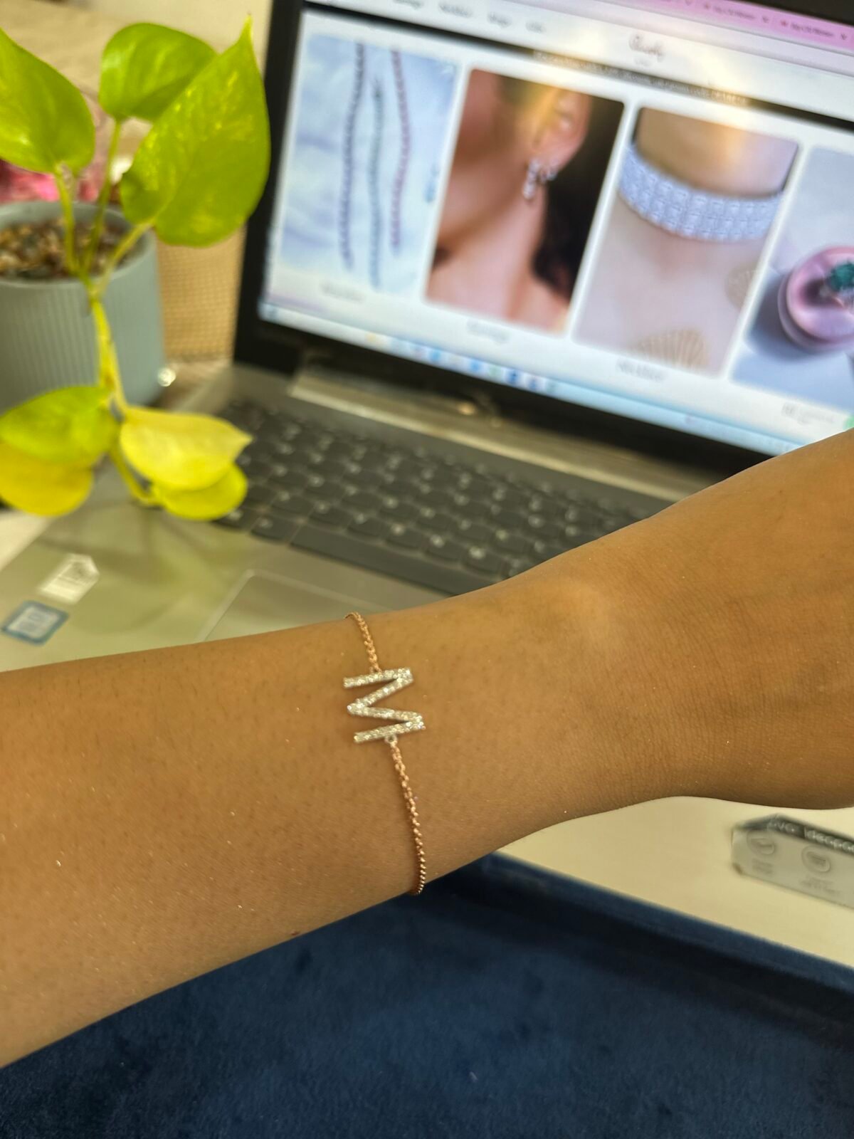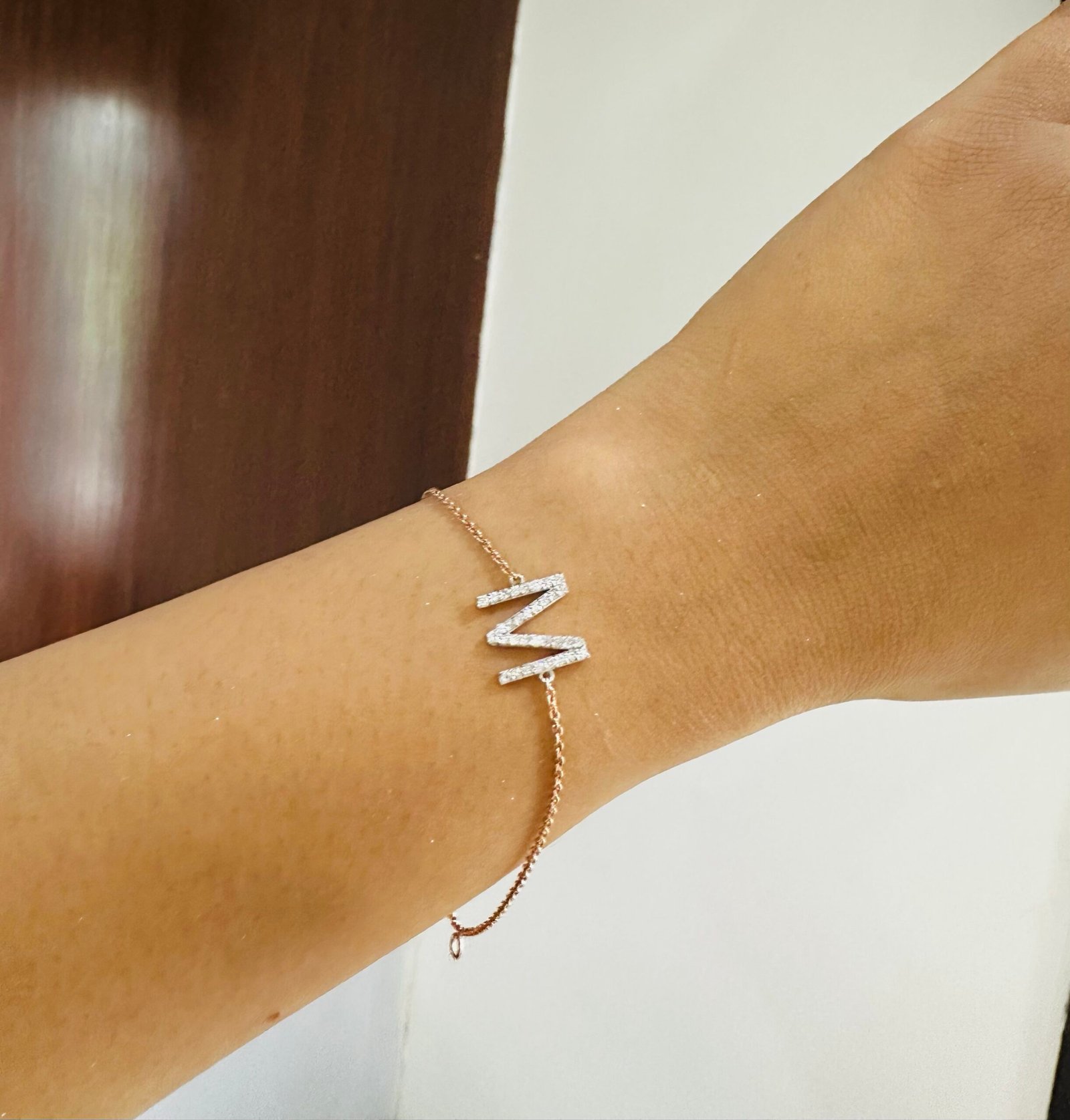 Celebrate individuality with this elegant A Letter Bracelet, crafted in radiant 18K rose gold. Designed for subtle charm, this piece features a sparkling lab-grown diamond that adds just the right amount of brilliance. Whether worn alone or stacked, it’s the perfect everyday keepsake. The best part? It can be customized with any letter, making it a deeply personal gift for yourself or a loved one.